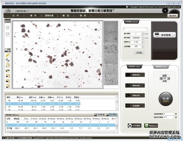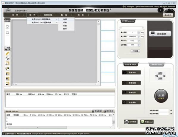 軟件采用數(shù)字?jǐn)z像頭對圖像進(jìn)行采集。它具有先進(jìn)的電腦測量系統(tǒng),界面簡潔,操作方便,通過點擊分析按鈕就可以自動得出圖像里的任意顆粒的數(shù)據(jù),測量方便,減少了人為誤差,大大提高了測量精度